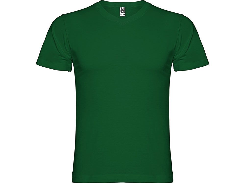 Мужская футболка без боковых швов с коротким рукавом и V-образным вырезом горловины, отделанном рибом 1х1. Горловина и плечевые швы дополнительно укреплены тесьмой.