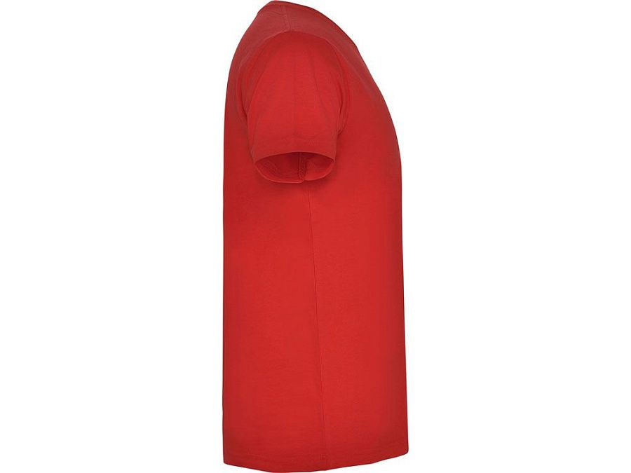 Мужская футболка без боковых швов с коротким рукавом и V-образным вырезом горловины, отделанном рибом 1х1. Горловина и плечевые швы дополнительно укреплены тесьмой.
