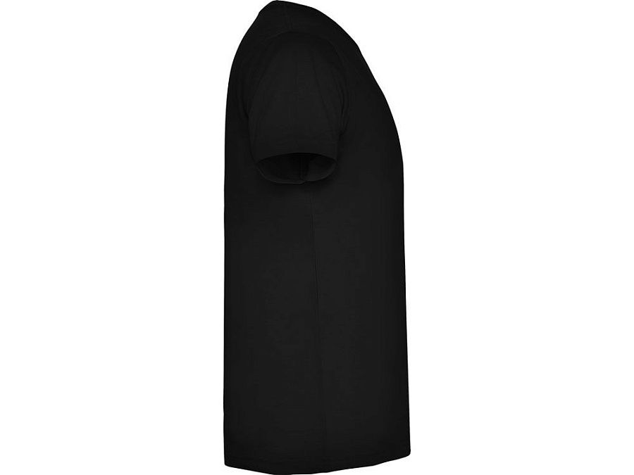 Мужская футболка без боковых швов с коротким рукавом и V-образным вырезом горловины, отделанном рибом 1х1. Горловина и плечевые швы дополнительно укреплены тесьмой.