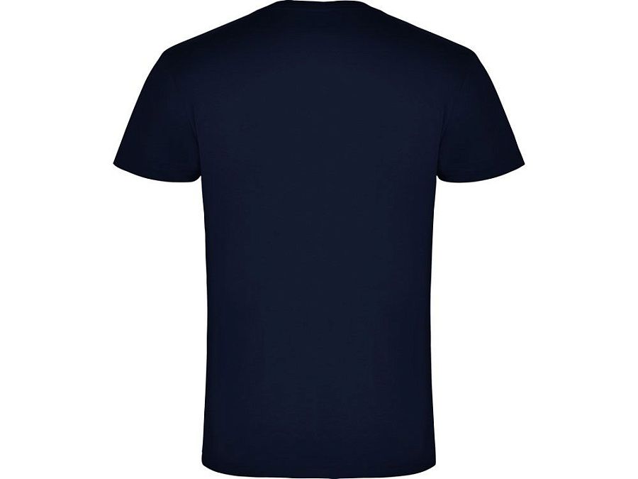 Мужская футболка без боковых швов с коротким рукавом и V-образным вырезом горловины, отделанном рибом 1х1. Горловина и плечевые швы дополнительно укреплены тесьмой.