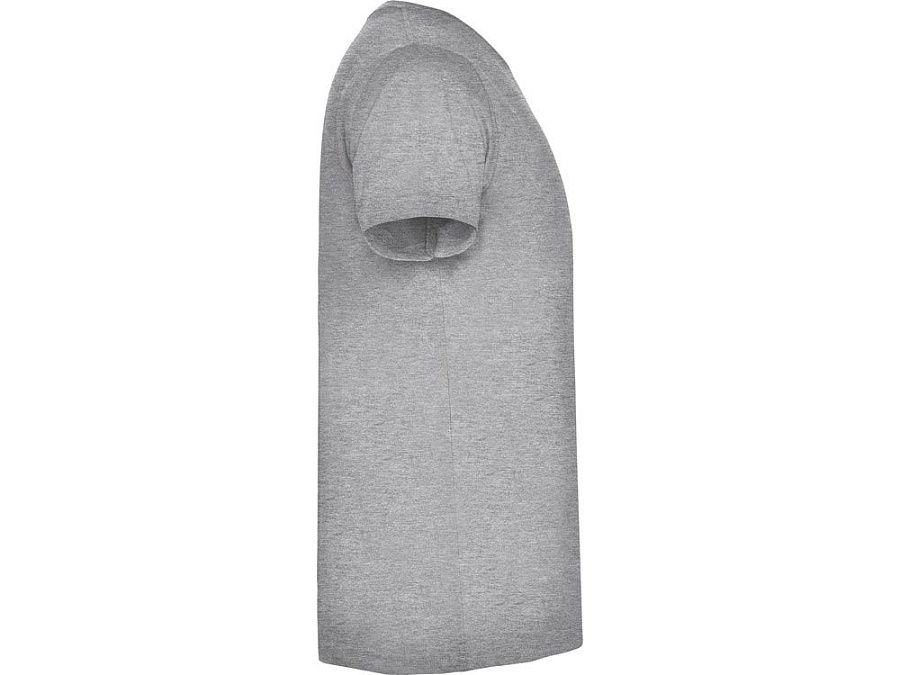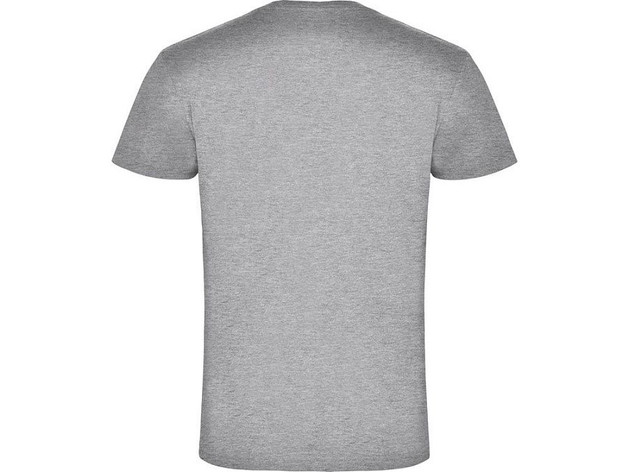 Мужская футболка без боковых швов с коротким рукавом и V-образным вырезом горловины, отделанном рибом 1х1. Горловина и плечевые швы дополнительно укреплены тесьмой.