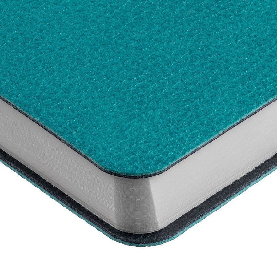 Ежедневник с гибкой обложкой, выполнен из материал La Fite, синий НН, дополнен ляссе в цвет обложки с металлическим шильдом.