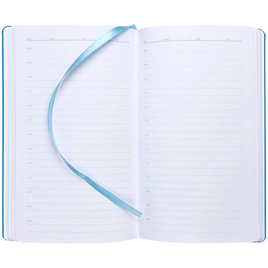 Ежедневник с твердой обложкой, выполнен из материала LaFite, темно-синий ХХ, дополнен резинкой и ляссе в цвет обложки.