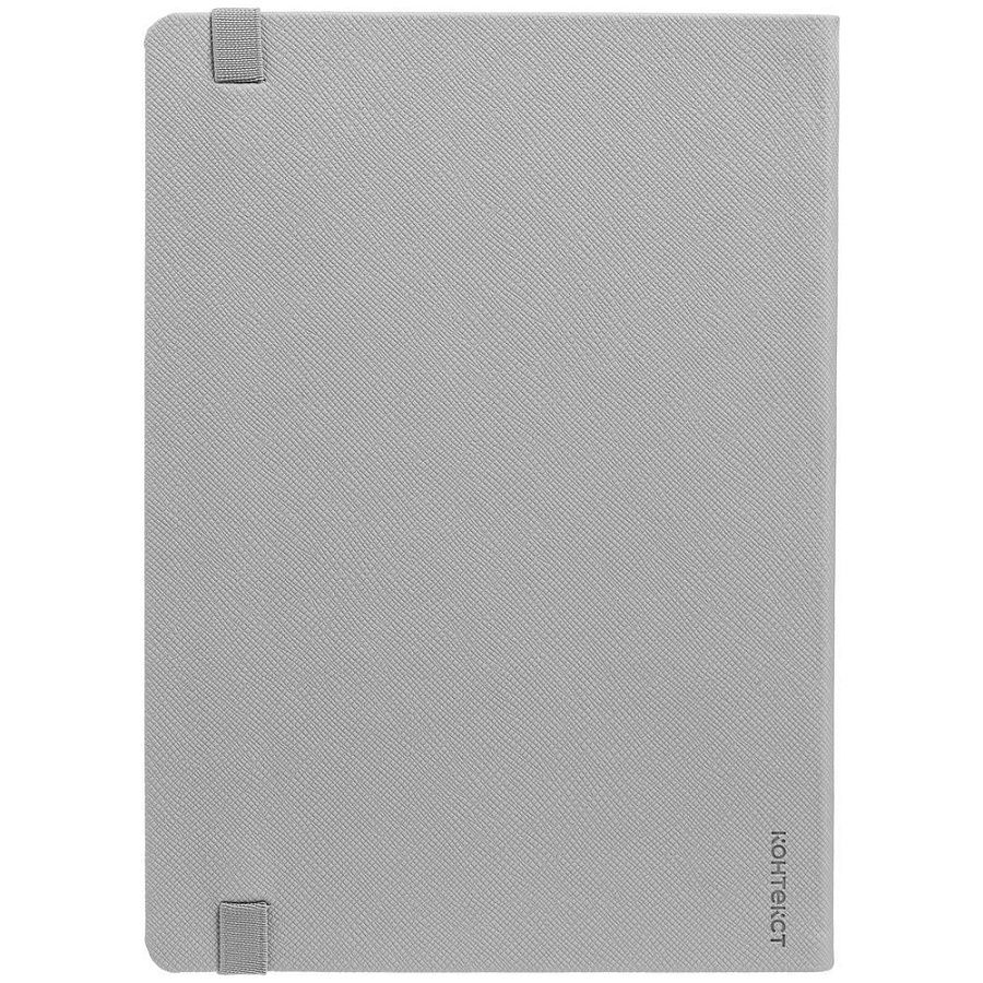 Ежедневник с твердой обложкой выполнен из материала Nice Touch, серый СС, и дополнен резинкой шириной 1 см и ляссе серого цвета.