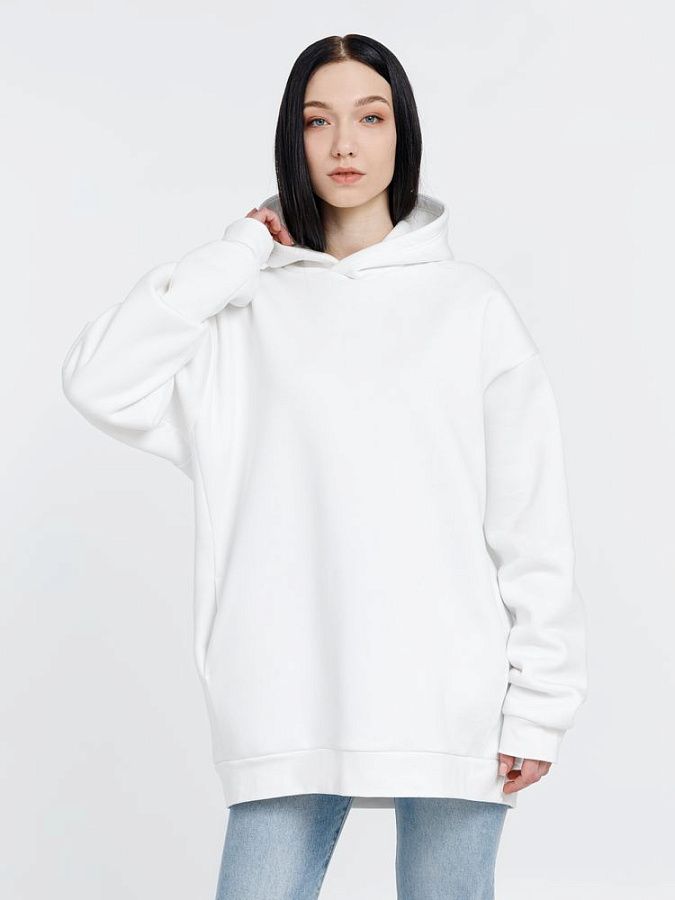 Худи унисекс One Size со спущенным плечом и карманами в боковых швах.
