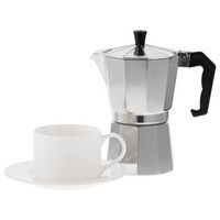 кофеварка: высота 19 см, диаметр 10 см, ширина с ручкой 17 см; чашка: диаметр 8,5 см, высота 6 см, ширина с ручкой 11,6 см; блюдце: 15,5x1 см; пакет: 42х34,5х15 см