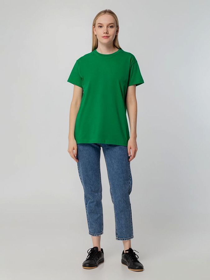 Футболка унисекс прямого силуэта без боковых швов (размеры S–4XL) или с боковыми швами (размер 5XL). Активное крашение полотна — изделие сохраняет цвет надолго.