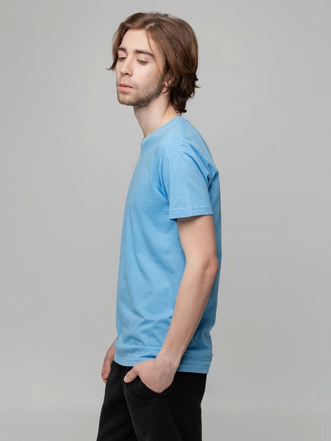 Футболка унисекс прямого силуэта без боковых швов (размеры S–4XL) или с боковыми швами (размер 5XL). Активное крашение полотна — изделие сохраняет цвет надолго.