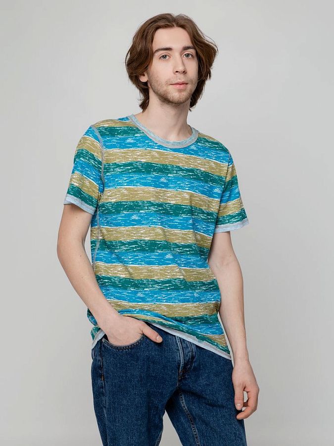 Двусторонняя мужская футболка с круглым вырезом и плоскими швами.