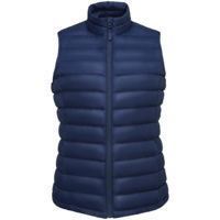 Женский стеганый жилет облегающего кроя на молнии с воротником-стойкой.