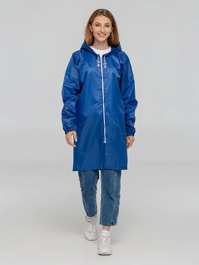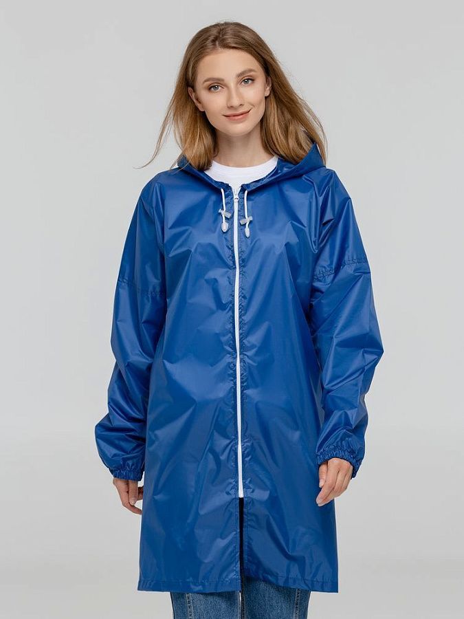 Плащ-дождевик из ткани таффета на молнии с капюшоном. Складывается в мешочек — удобно брать с собой.