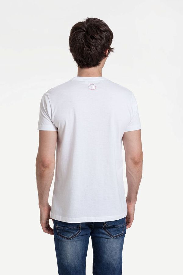 Кроеная футболка (с боковыми швами). Приталенная облегающая модель, зауженный книзу рукав, укрепляющая тесьма по вороту, воротник связан резинкой с эластаном.