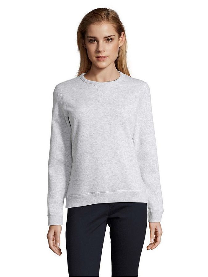 Женская утепленная толстовка с круглым вырезом и декоративной треугольной вставкой. Лейбл производителя в боковом шве изнутри, в шве горловины — только бирка с размером, что позволяет вам нанести свой логотип.