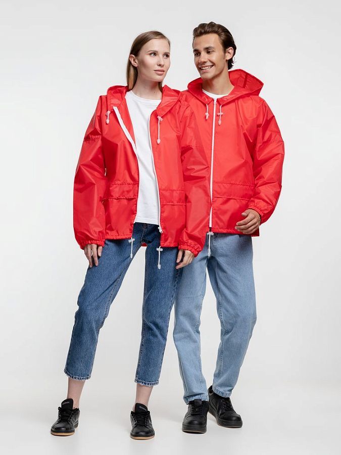 Укороченный дождевик свободного кроя из ткани таффета с влагозащитным покрытием. Складывается в мешочек — удобно брать с собой.