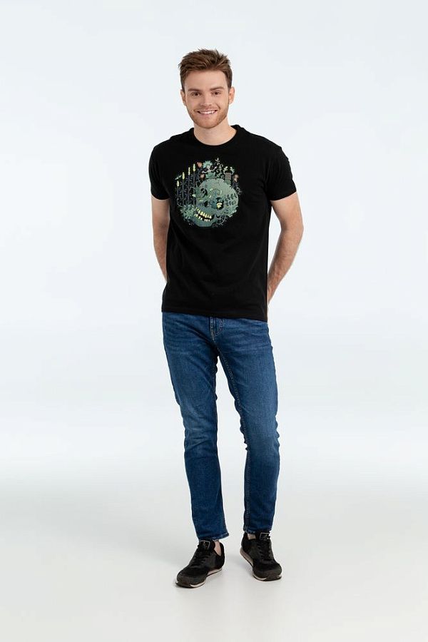Дизайн футболки «Серенада» представляет собой своеобразную русскую готику в остроумном переосмыслении художника.