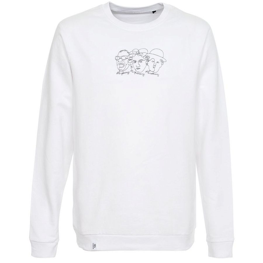 «Ничего не вижу, ничего не слышу, ничего никому не скажу». Аллюзия на культурный феномен представлена вышивкой с портретами трех великих авторов. Музыкант Рей Чарльз был лишен зрения, композитор Людвиг Ван Бетховен — слуха, а актер и режиссер Чарли Чаплин создавал немое кино. Никакие ограничения не могут помешать талантливому человеку доносить свои идеи и создавать прекрасное.Классический кроеный свитшот унисекс. Манжеты, ворот и низ изделия отделаны резинкой. Внутренняя сторона без начеса.
