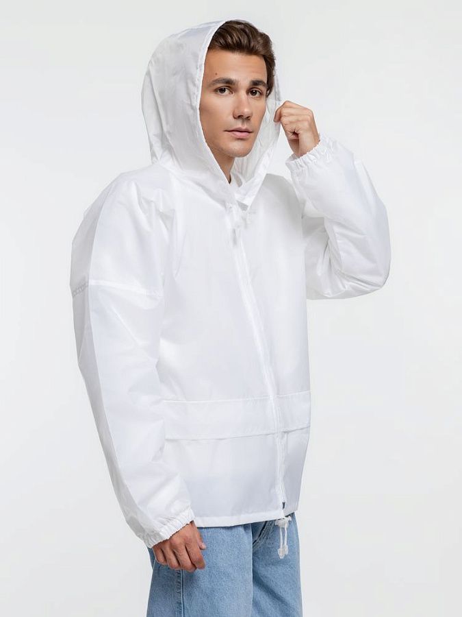 Укороченный дождевик свободного кроя из ткани таффета с влагозащитным покрытием. Складывается в мешочек — удобно брать с собой.