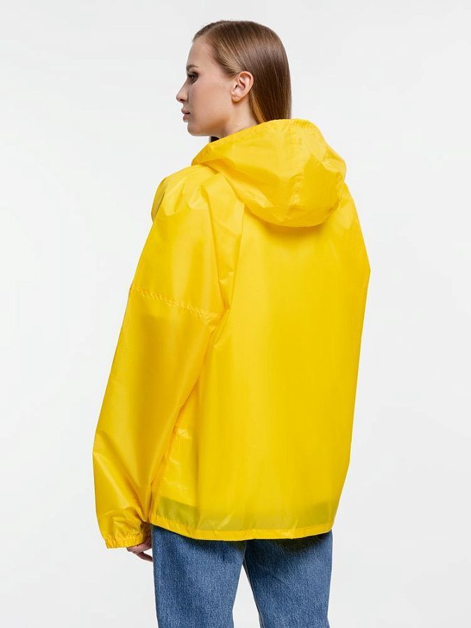Укороченный дождевик свободного кроя из ткани таффета с влагозащитным покрытием. Складывается в мешочек — удобно брать с собой.