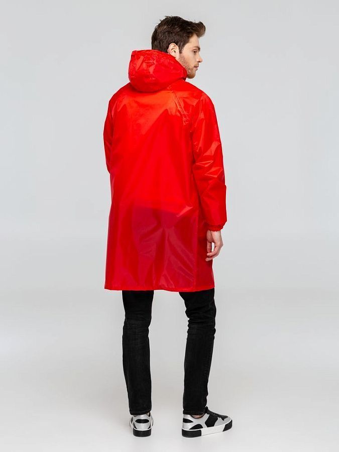 Плащ–дождевик на молнии с капюшоном и рукавами реглан. Ветрозащитные манжеты на рукавах.