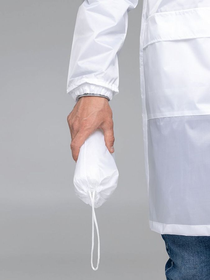 Плащ–дождевик на молнии с капюшоном и рукавами реглан. Ветрозащитные манжеты на рукавах.