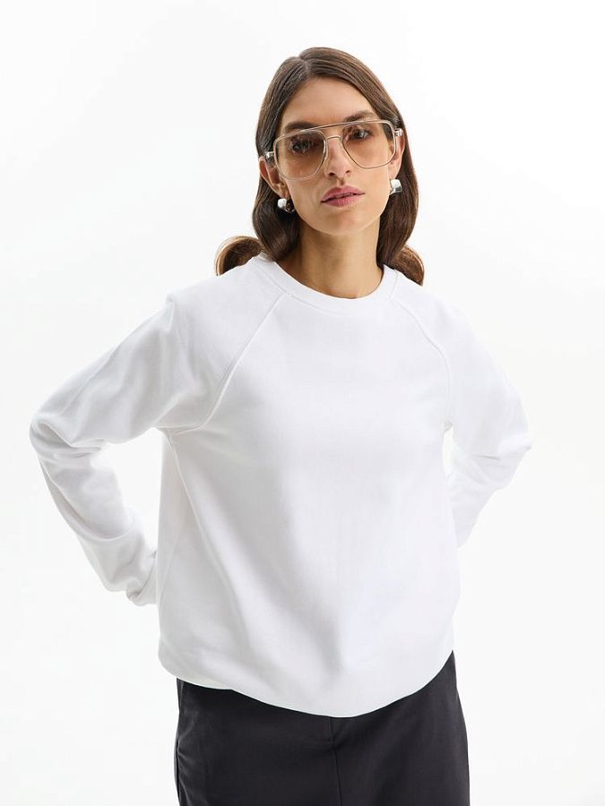 Свитшот унисекс из органического хлопка. Лейбл производителя в боковом шве изнутри, в шве горловины — только бирка с размером, что позволяет удобно нанести свой логотип.