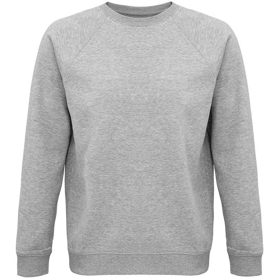 Свитшот унисекс из органического хлопка. Лейбл производителя в боковом шве изнутри, в шве горловины — только бирка с размером, что позволяет удобно нанести свой логотип.