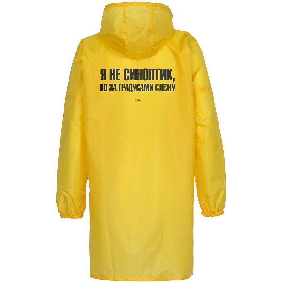 Предсказывать погоду трудно. А непогоду — легко! Если на улице тучи, дождь и ветер — это явный признак того, что надо захватить с собой дождевик. И лучше желтый. Вдруг это вызовет солнце!Плащ-дождевик из ткани таффета на молнии с капюшоном. Складывается в мешочек — удобно брать с собой.