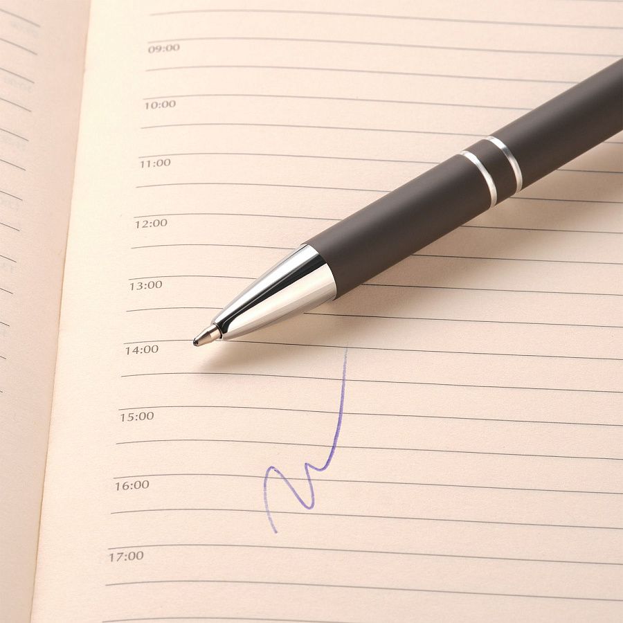Классическая ручка в шелковистом покрытии soft touch станет прекрасным инструментом для письма. Хромированные детали – два декоративных кольца и функциональный надежный клип.