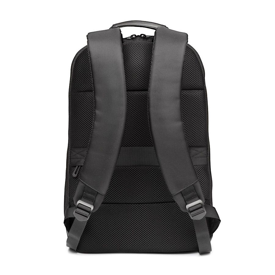 На спинке широкая багажная лента для закрепления на ручке чемодана. Для вашего удобства все карманы рюкзака продуманы до мелочей: внешний карман на спинке – для паспорта, телефона или ключей; внутри предусмотрен карман, где легко помещается планшет или ноутбук до 15,6 дюймов и еще два внутренних кармана. Спинка имеет сетчатую и мягкую поверхность, которая пропускает воздух и не дает спине уставать. Верхняя ручка – выполнена из искусственной кожи.