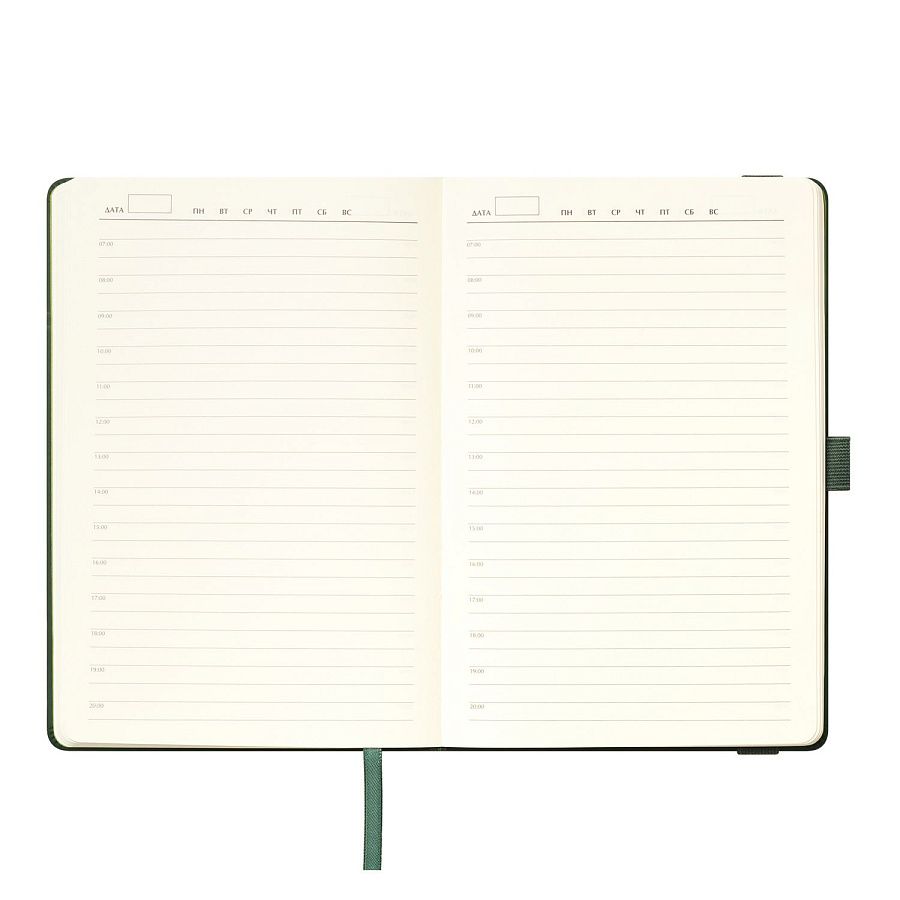 Страницы теплого кремового оттенка с легкой шелковистостью и скругленными уголками радуют глаз и приятны на ощупь. Матовый срез в тон страниц дополняет гармоничный образ. Атласное ляссе, подобранное в тон обложке, с легким блеском и шелковистой текстурой поможет вам быстро найти нужную страницу.