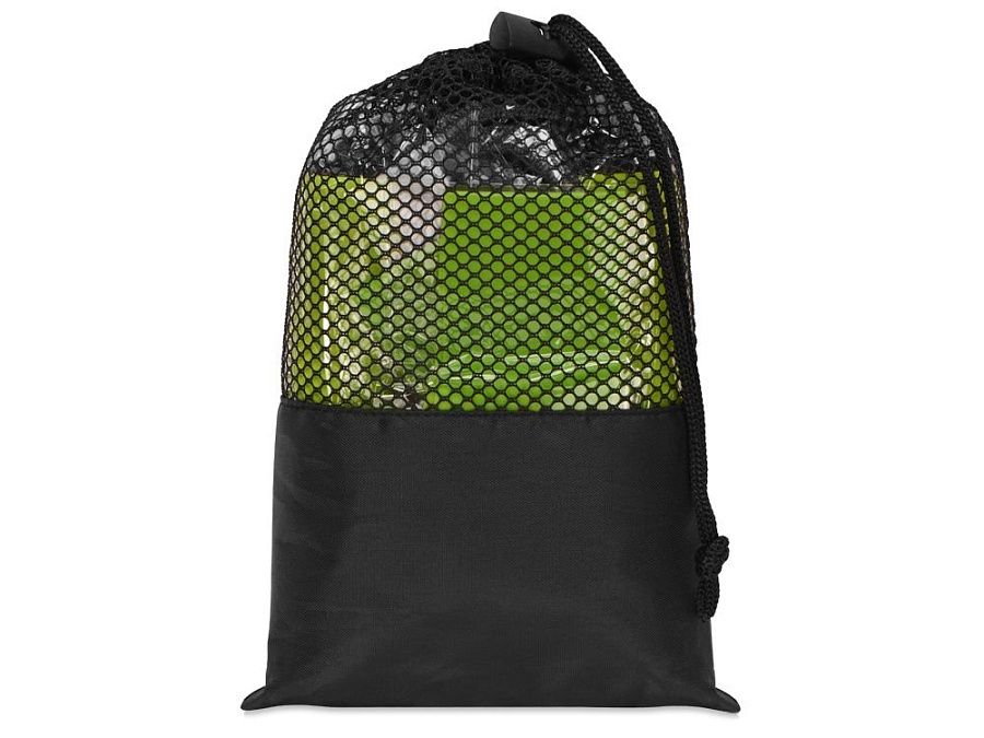 Набор упакован в тканевый мешочек на шнурке, а сквозь сетчатую вставку можно рассмотреть содержимое, чтобы точно взять все необходимое для тренировки с собой.