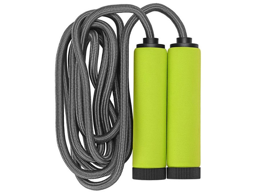 Скакалка — с удобными эргономичными пластиковыми ручками, зона хвата покрыта мягким вспененным материалом, который не дает ладони скользить во время тренировок.