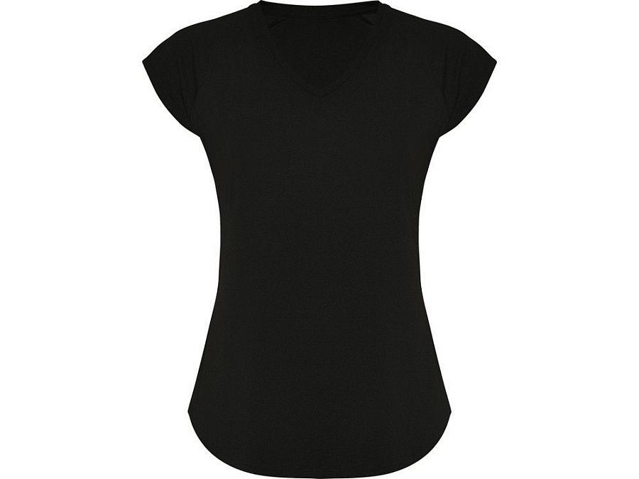 Спортивная женская футболка с коротким рукавом реглан. Вырез горловины V. Полотно из полиэстера на ощупь напоминающее хлопок. Приталенный силуэт.