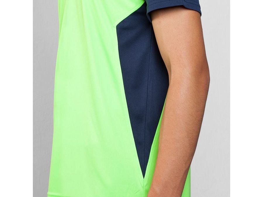 Спортивная футболка с коротким рукавом реглан. Круглый вырез горловины. Контрастные рукава и боковые вставки.