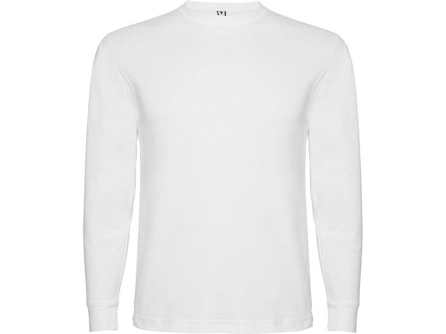 Футболка с длинным рукавом без боковых швов. Круглый вырез горловины и манжеты из риба 1х1. Укрепляющая отделочная строчка по горловине и плечам