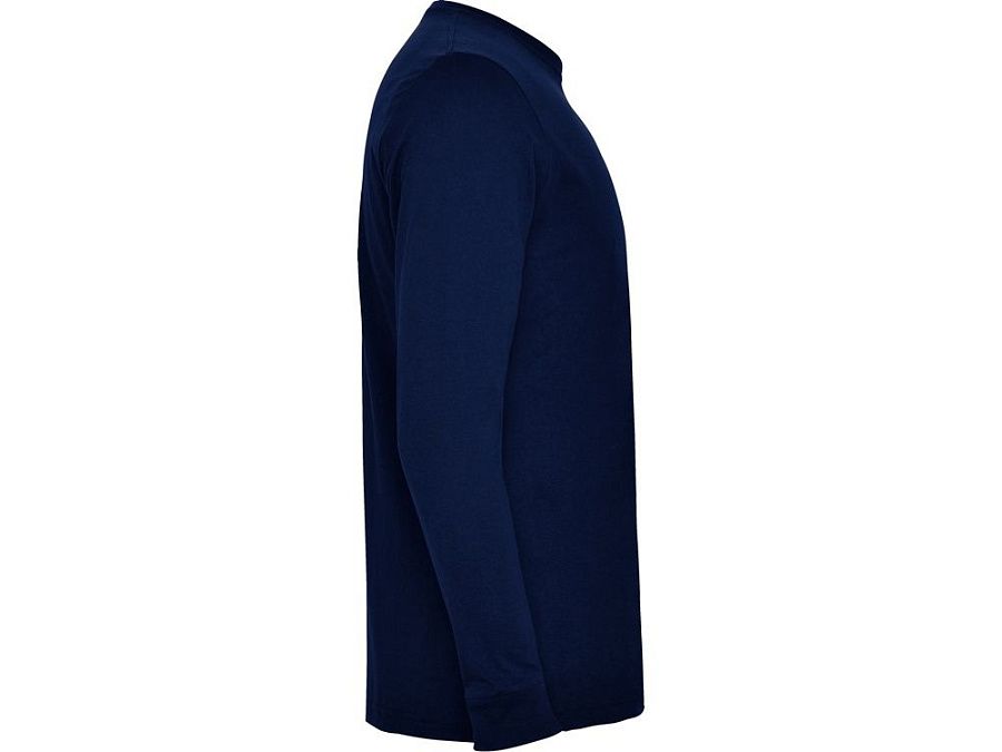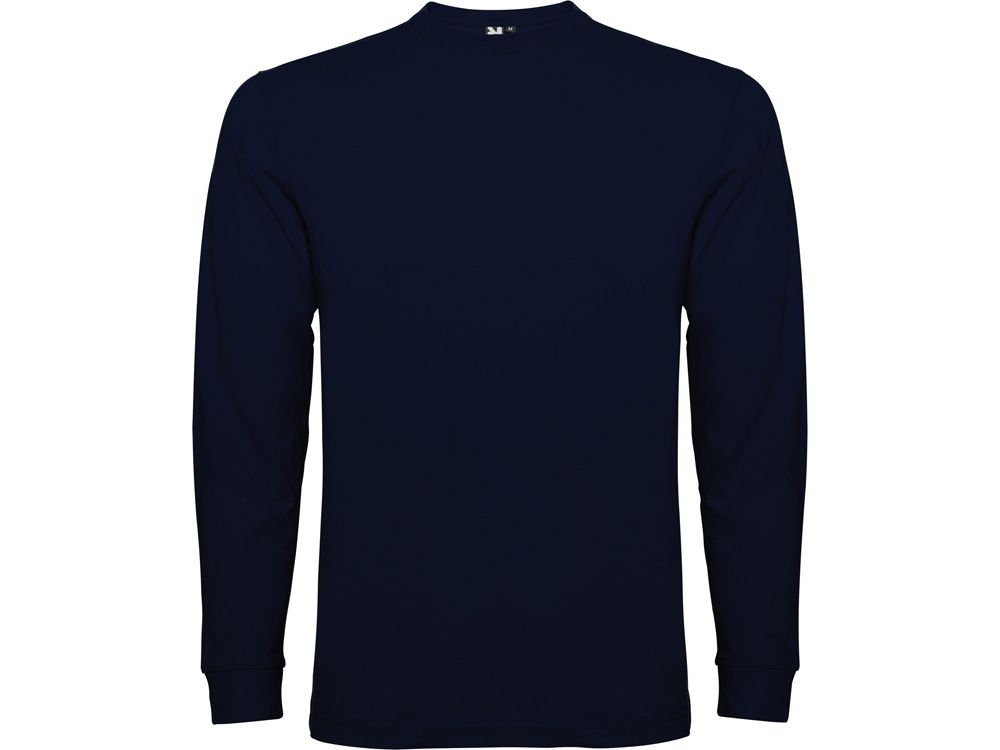 Футболка с длинным рукавом без боковых швов. Круглый вырез горловины и манжеты из риба 1х1. Укрепляющая отделочная строчка по горловине и плечам