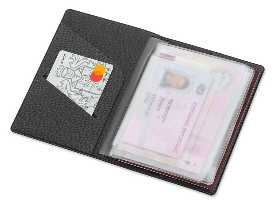 Внутренние вкладыши выполнены из пленки пвх и позволяют разместить: паспорт, свидетельство о регистрации тс, полис осаго, водительское удостоверение, также имеется кармашек для пластиковой карты.