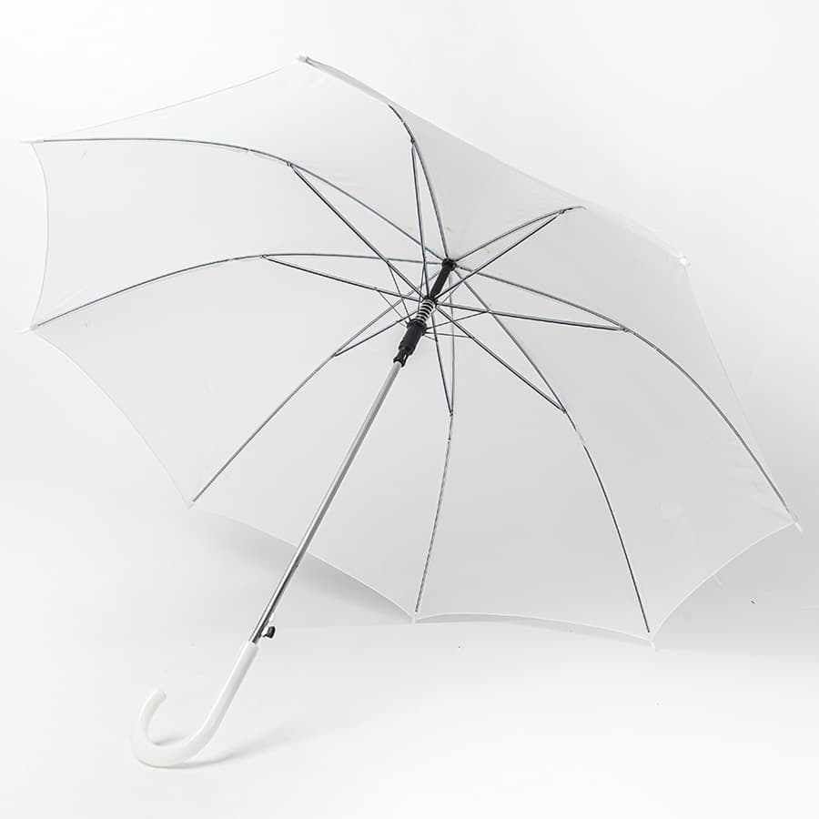 Зонт-трость, полуавтомат. Состав купола: 100% нейлон 190T. Диаметр купола: 103 см. Состав стержня: металл. Состав спиц: металл. Ручка: пластик. Цвет купола: белый.