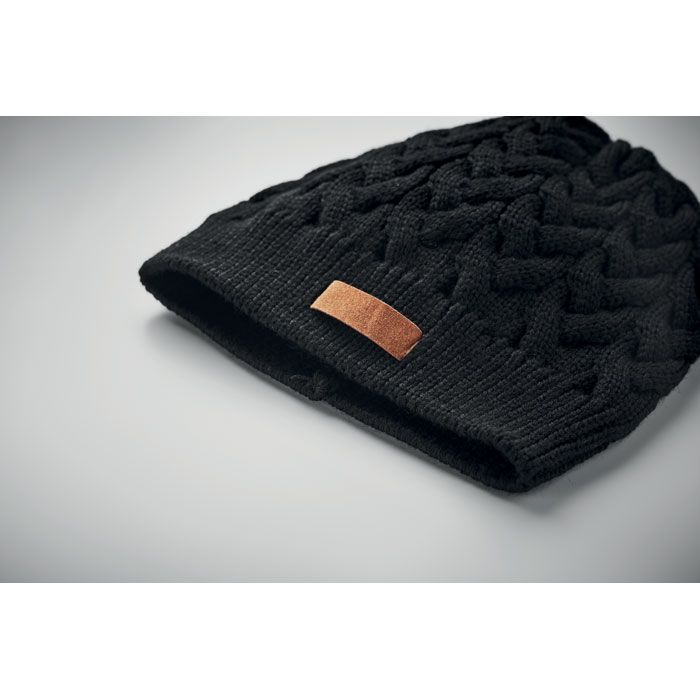 Вязаная шапочка из переработанного материала с нашивкой для нанесения.