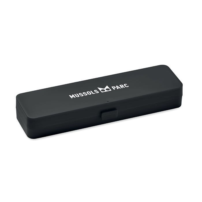 Многоразовый пластиковый набор столовых приборов в футляре. Включает ложку, вилку и нож.