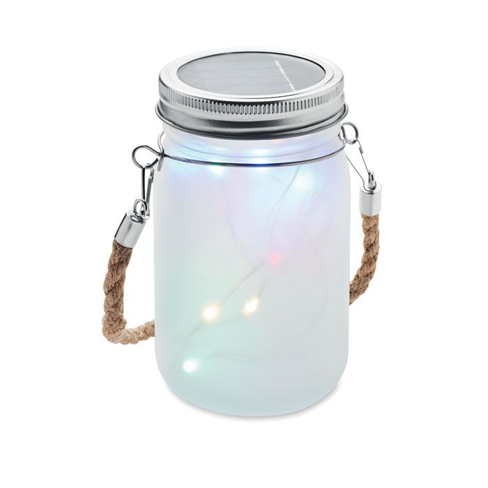 Уличный светильник на солнечных батареях из стекла с 20 светодиодными лампочками разных цветов. Подвеска сверху. Время работы около 7 часов. Аккумулятор 600 мАч и 1 NI-MH в комплекте. IP44.