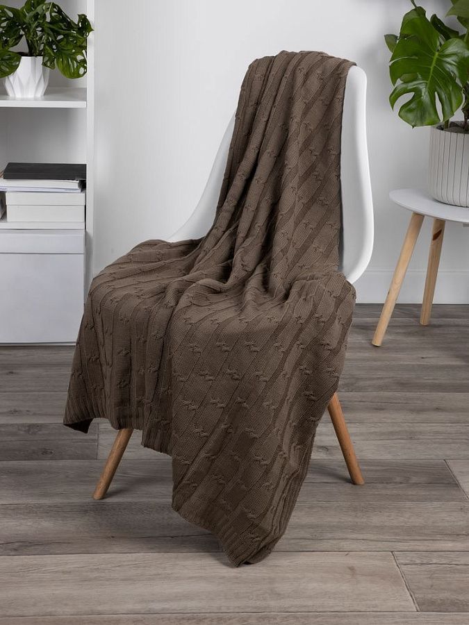 Плед мягкого натурального оттенка с ненавязчивым классическим узором «косы» добавит спокойного шика в интерьер, гармонично впишется в композицию современной гостиной или спальни.