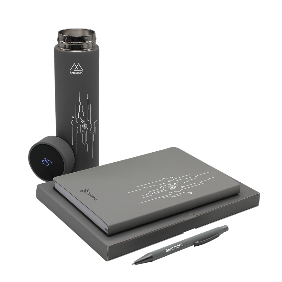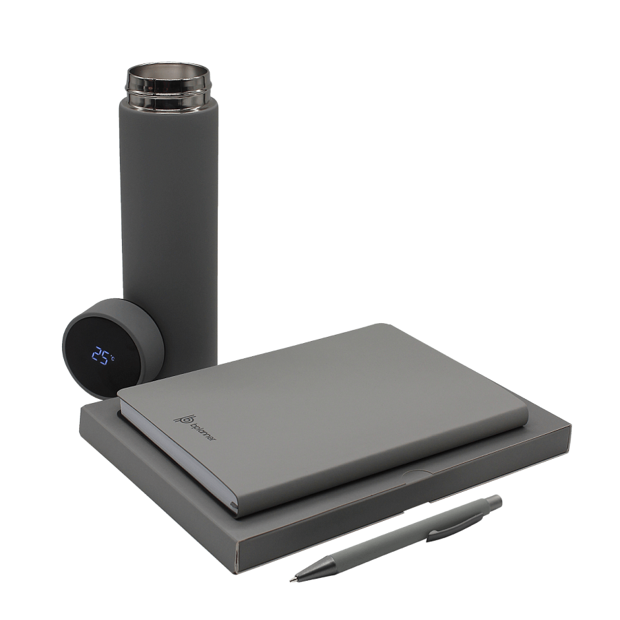 Набор с ежедневником Bplanner Street – полезен и в офисе, и на улице. Набор состоит из уникального ежедневника Bplanner, ручки Trinity Kg Si Gum с поверхностью soft-touch, урбанистического термоса Reactor с датчиком температуры жидкости и ультрамодного шоппера Superbag.