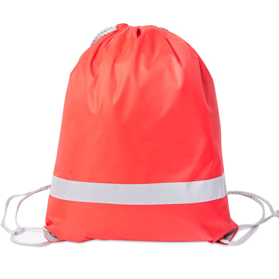 Просто и безопасно! Рюкзак-мешок RAY из полиэстера 210Dсо светоотражающей полосой спереди, светоотражающими уголками,усиленными металлическими люверсамиЛегко и просто затягивается по верхней части серыми шнурами.Красный цвет близкий к Pantone 199C