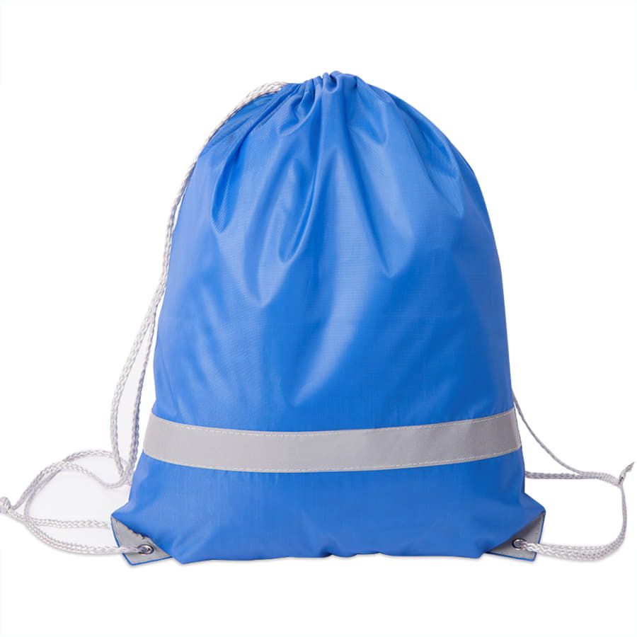 Просто и безопасно! Рюкзак-мешок RAY из полиэстера 210Dсо светоотражающей полосой спереди, светоотражающими уголками,усиленными металлическими люверсамиЛегко и просто затягивается по верхней части серыми шнурами.Синий цвет близкий к Pantone 3506C