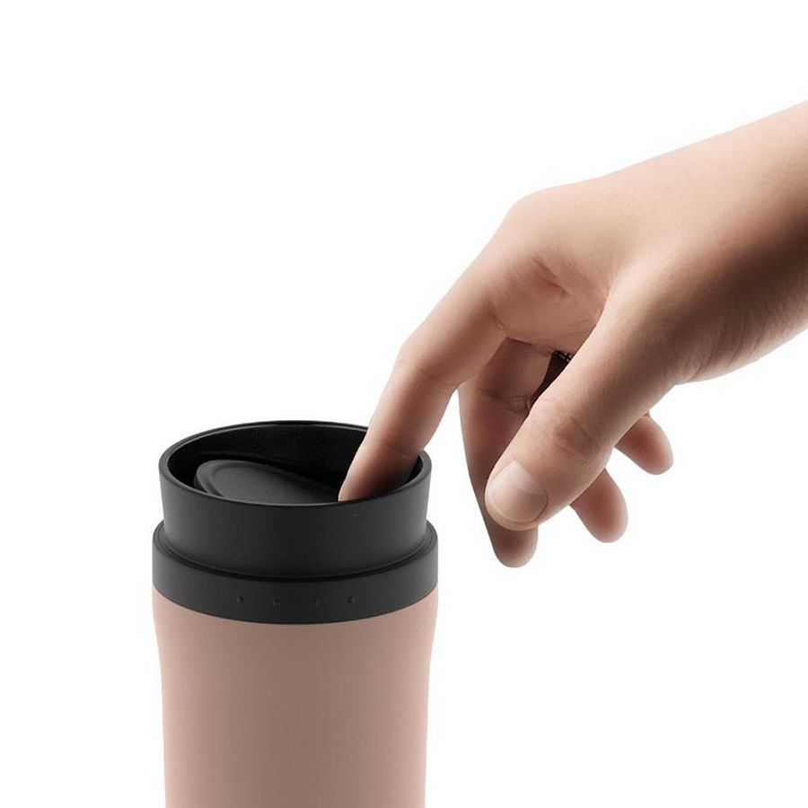 - Герметичная завинчивающаяся крышка с силиконовым уплотнителем и питьевой системой с клапаном — технология 360° позволяет одним нажатием открывать кружку и пить с любой стороны