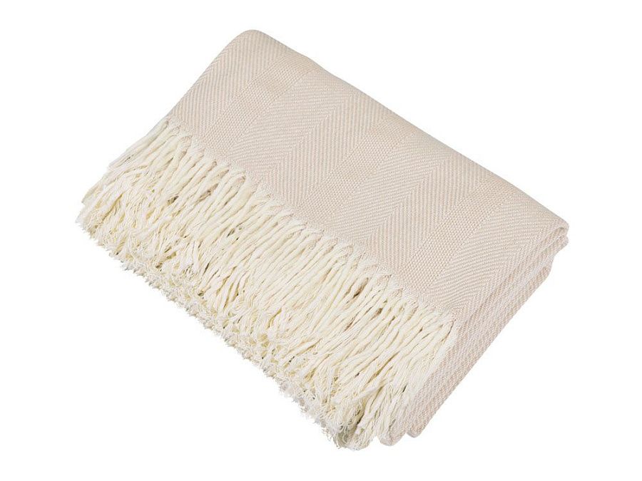 Плотный плед из натурального хлопка с бахромой по бокам. Можно использовать как одеяло или как покрывало для украшения интерьера.