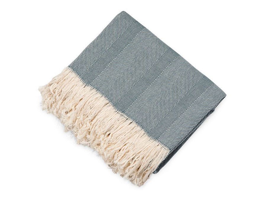 Плотный плед из натурального хлопка с бахромой по бокам. Можно использовать как одеяло или как покрывало для украшения интерьера.