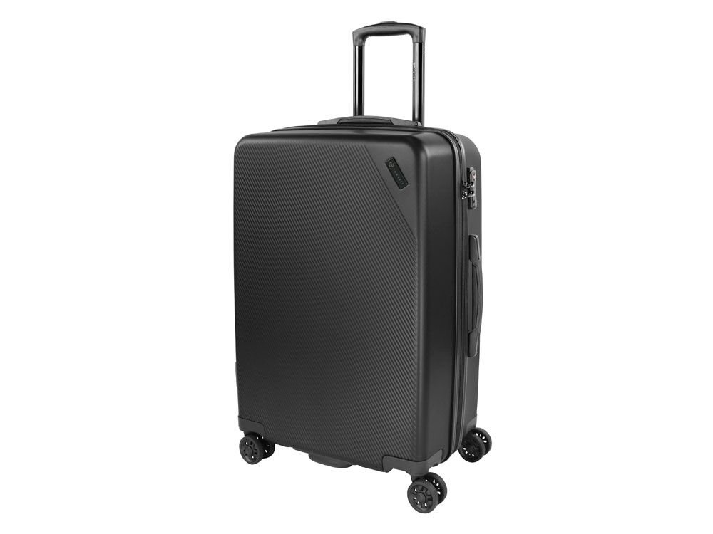 Серия Kallisto воплощает собой нашу страсть к путешествиям. Тонкие диагональные полосы и стильная поверхность с металлическим оттенком подчёркивают непринужденную привлекательность коллекции, представленной в чёрном цвете. Логотип Bugatti аккуратно встроен в металлический шильдик на корпусе. Четыре двойных резиновых колеса просты в управлении и очень удобны. Они могут вращаться на 360°, обеспечивая лёгкий ход по любой поверхности при сохранении полной манёвренности. Лёгкая выдвижная телескопическая ручка удобно фиксируется в нескольких положениях. Замок TSA с трехзначным кодом надёжно защищает содержимое багажа от несанкционированного доступа, а дополнительная ручка на дне корпуса облегчает загрузку и выгрузку чемодана. Продуманная концепция больших отделений с внутренней перегородкой на молнии позволяет максимально практично использовать внутреннее пространство.