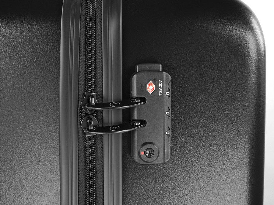 Внешняя организация: телескопическая ручка, кодовый замок TSA, 4 двойных колеса, боковая ручка, ручка на дне